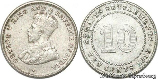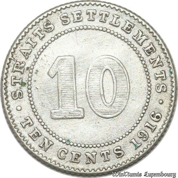 S8819 UK 10 Cents Settlements George V 1916 Argent Silver ->Make offer