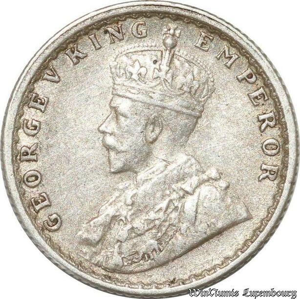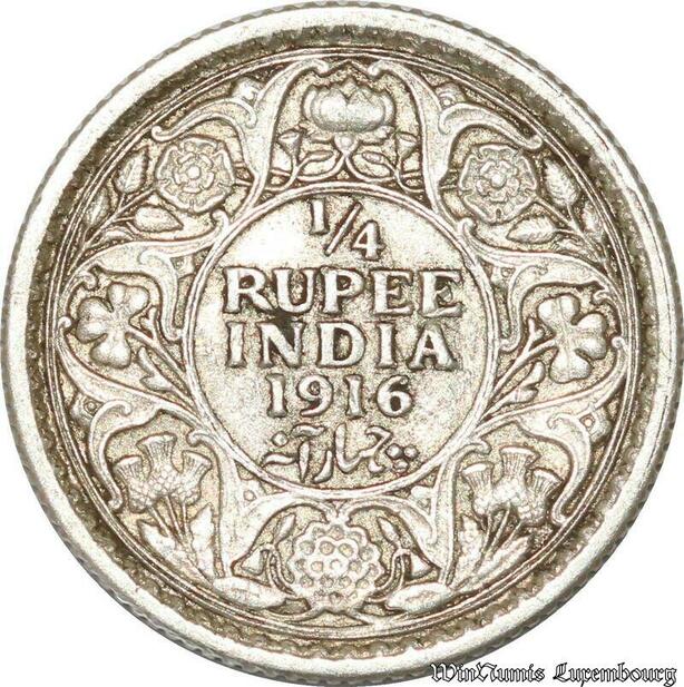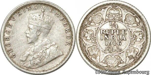 S8828 India-British 1/4 Rupee George V 1916 Argent Silver ->Make offer