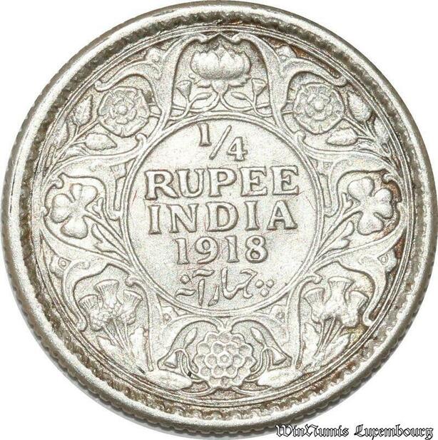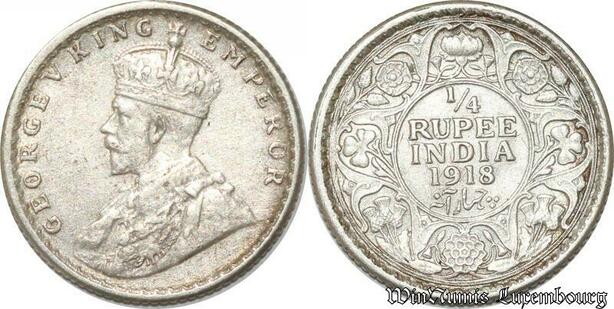 S8829 India-British 1/4 Rupee George V 1918 Argent Silver AU ! ->Make offer