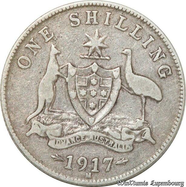 S8857 Australia Shilling 1917 M Melbourne Argent Silver ->make offer