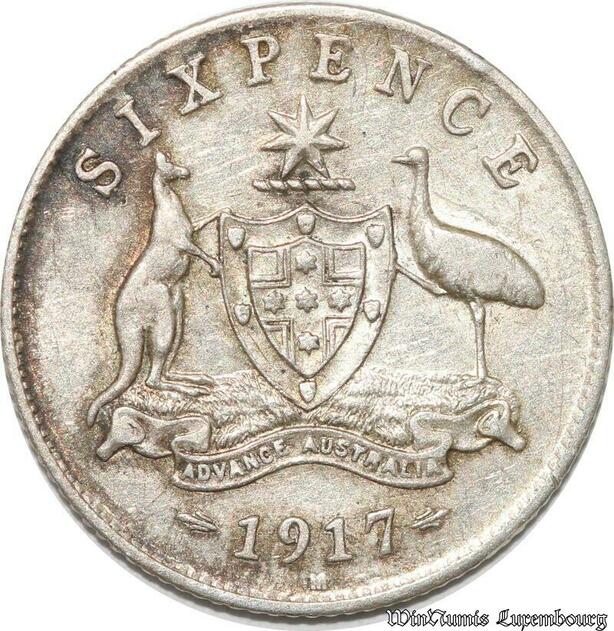 S8860 Rare Australia 6 Pence George V 1917 M Melbourne Silver AU -> Make offer