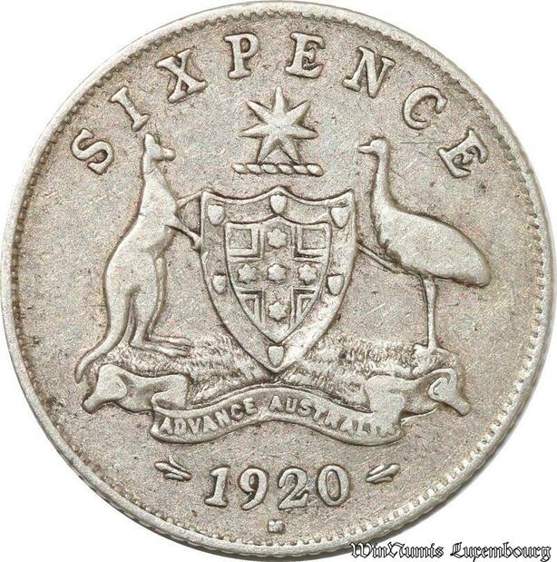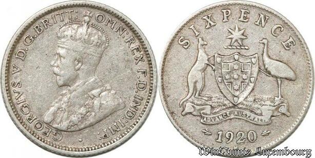S8862 Australia Six Pence 6 George V 1920 M Melbourne Argent Silver