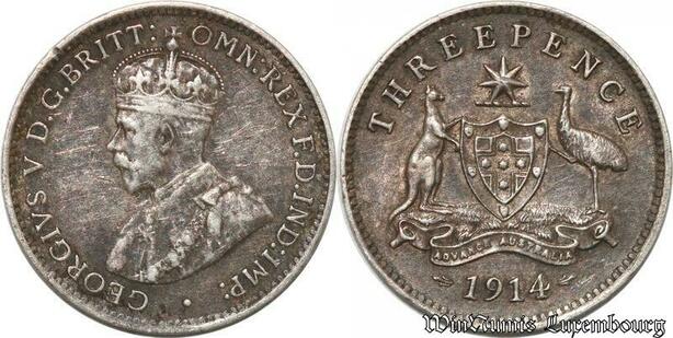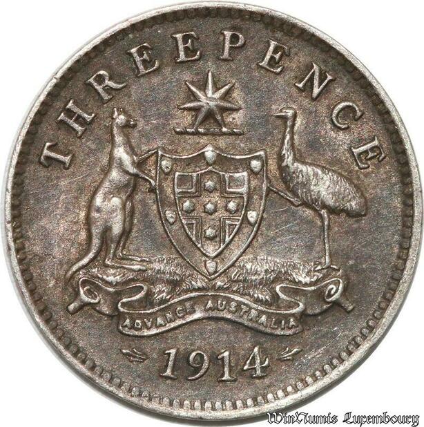 S8863 Scarce Australia Three 3 Pence George V 1914 Argent Silver AU ! 53 55