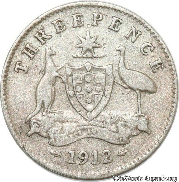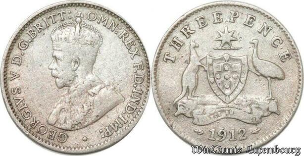 S8865 Australia Three 3 Pence George V 1912 Argent Silver ->Make offer