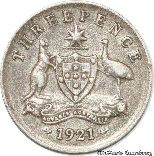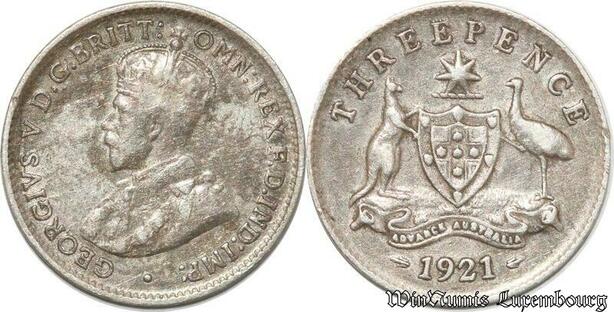 S8866 Australia Three 3 Pence George V 1921 Argent Silver ->Make offer