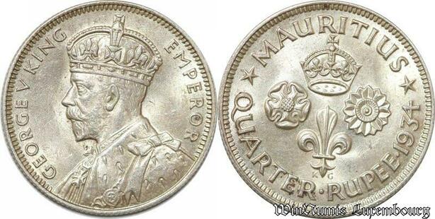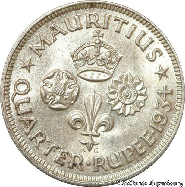 S8877 Mauritius ¼ Rupee George V 1934 Argent Silver UNC ! BU
