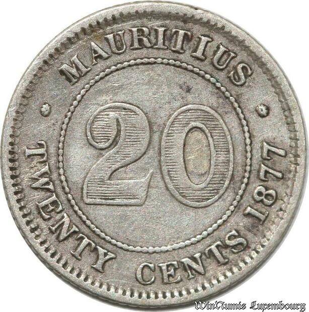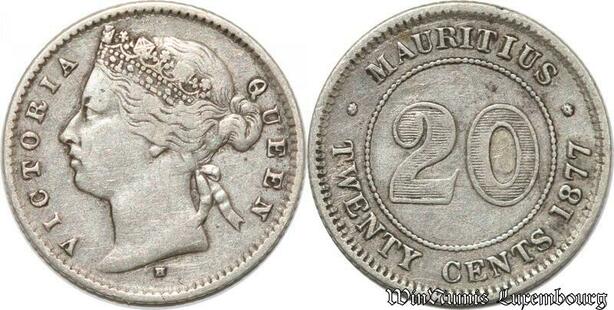 S8880 Mauritius 20 Cents Victoria 1877 H Heaton Reeded edge Silver ->M offer