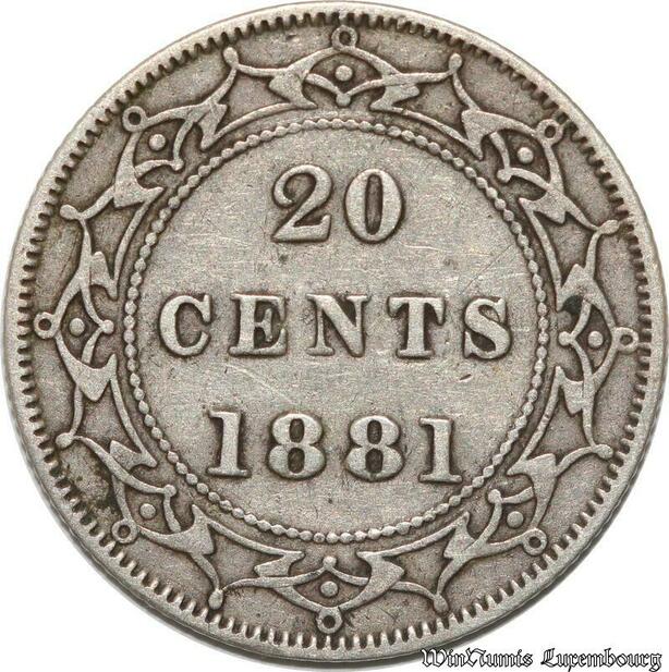 S8887 Canada Newfoundland 20 Cents Victoria 1881 Argent Silver XF ->Make offer