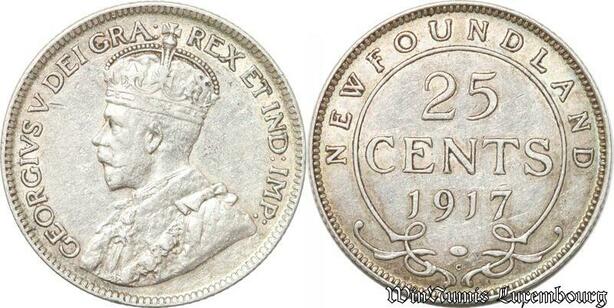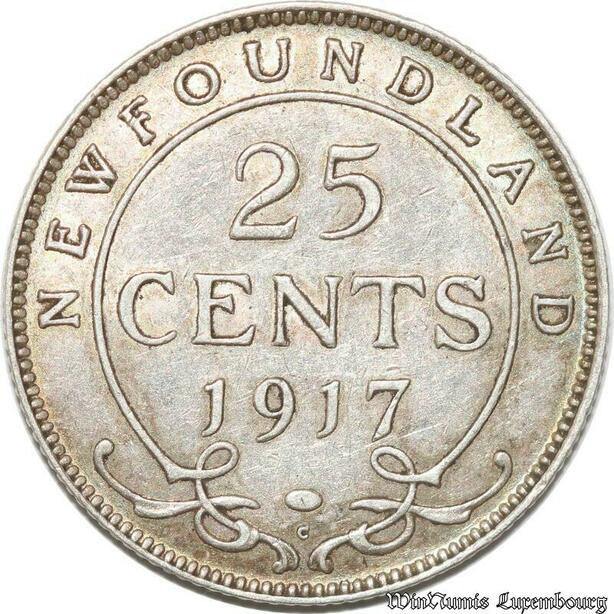 S8888 Canada Newfoundland 25 Cents George V 1917 C Silver AU 50 53