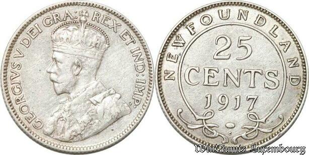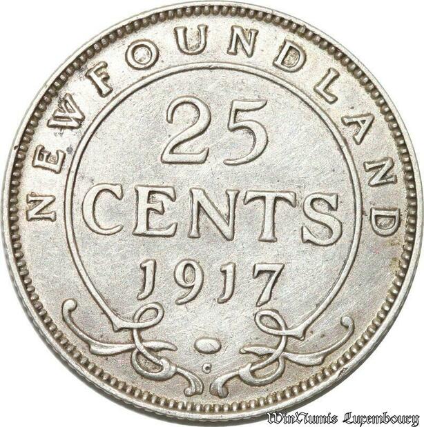 S8889 Canada Newfoundland 25 Cents George V 1917 C Argent Silver ->Make offer