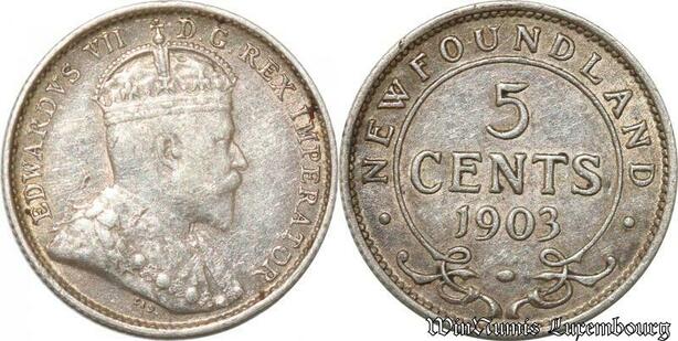 S8892 Canada Newfoundland 5 Cents Edouard VII 1903 Argent Silver XF !