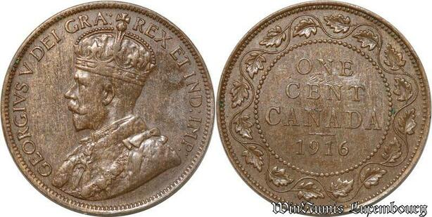 S8895 Canada One Cent George V 1916 AU SUP ->Faire Offre