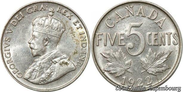 S8902 Canada 5 Cents George V 1922 AU ! ->Make offer