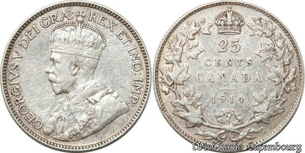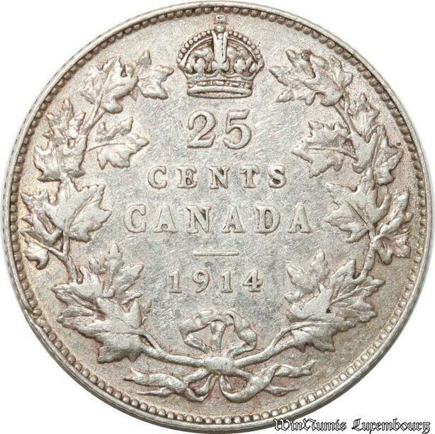 S8908 Canada 25 Cents George V 1914 Argent Silver ->Faire Offre