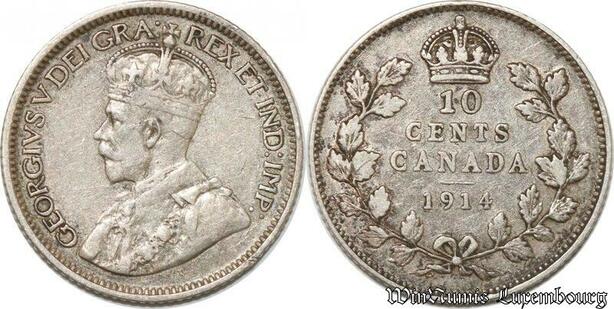 S8916 Canada 10 Cents George V 1914 Argent Silver ->Make offer