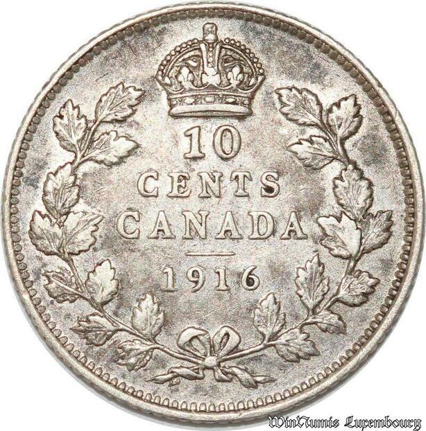 S8921 Canada 10 Cents George V 1916 Argent Silver ->Make offer