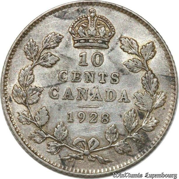 S8926 Canada 10 Cents George V 1928 Argent Silver ->Make offer