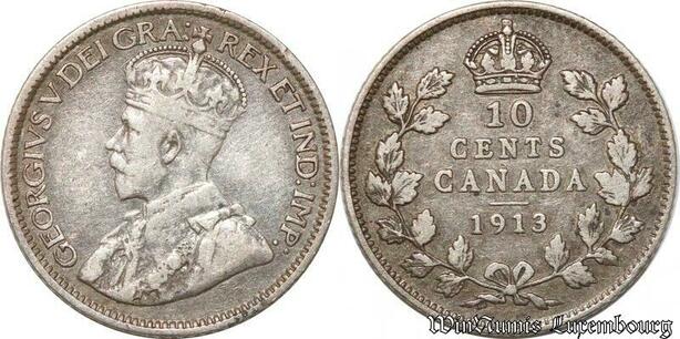 S8928 Canada 10 Cents George V 1913 Argent Silver ->Make offer