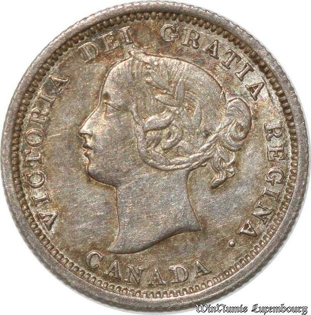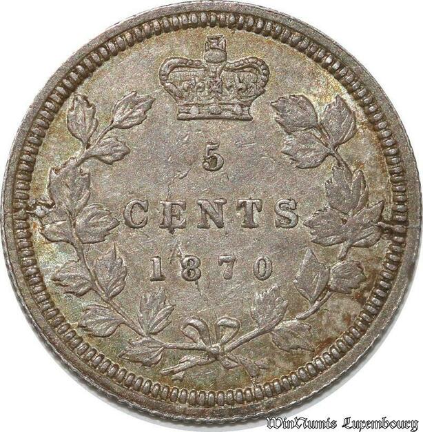 S8929 Rare Canada 5 Cents Victoria 1870 Flat Border Large Rim Silver UNC > Offer