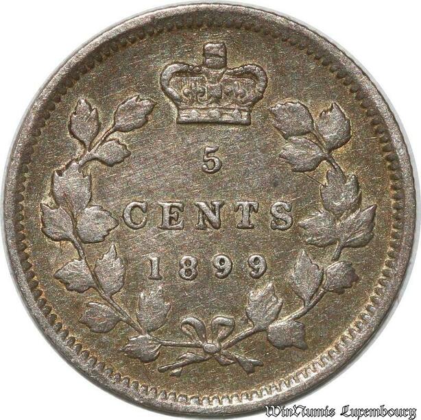 S8936 Rare Canada 5 Cents Victoria 1899 Argent Silver ->Make offer