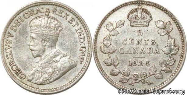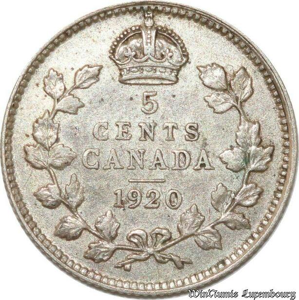 S8938 Canada 5 Cents George V 1920 Argent Silver ->Make offer