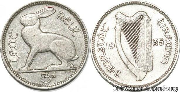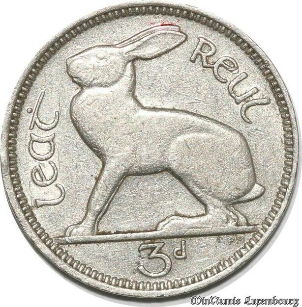 S8945 Ireland Republic 3 Pence 1935 Rabbit AU !->Make offer