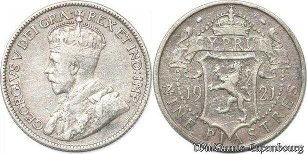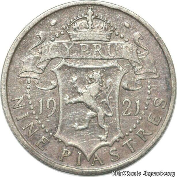S8973 Cyprus 9 Piastres George V 1921 Argent Silver XF ->Make offer