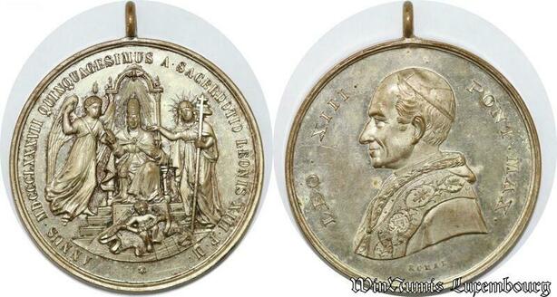 S9241 Medaglia Medal Papal Vatican Pope Leo XIII 1887 Quinquages Sacerdotio