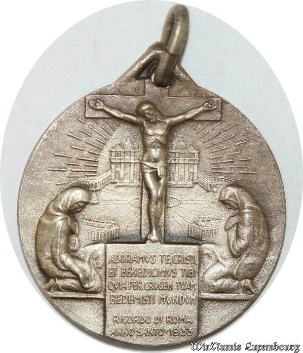 S9266 Médaille Vatican Pius Pie XI Pont Max 1933 Christ Crusifixion Silvered