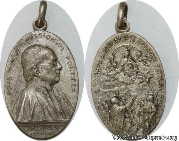 S9279 Médaille Papal Vatican Pius Pie XI Theresia 1879 1929 Silvered