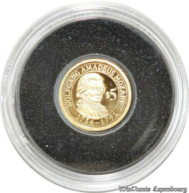 S9459 Rare Nauru 5 Dollars Mozart 2010 Or Gold PF BE -> Make offer