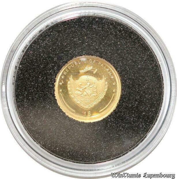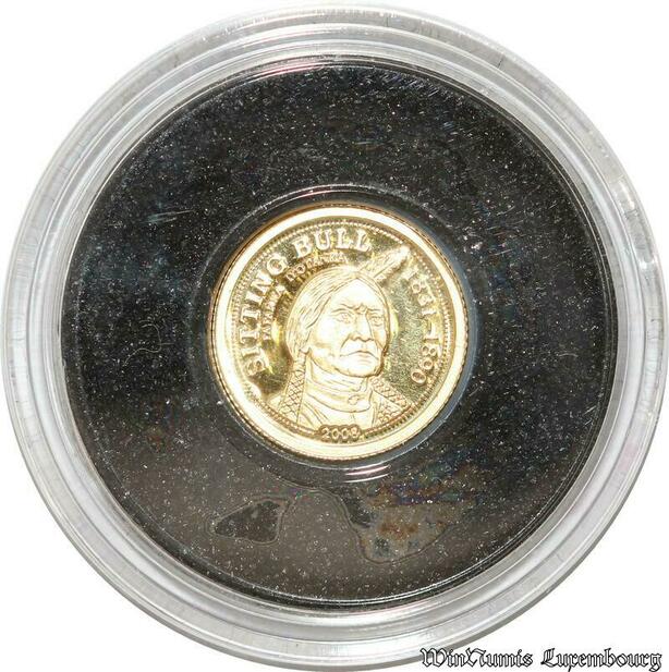 S9465 Rare Republic Palau 1 Dollar 2008 Sitting Bull Or Gold PF BE