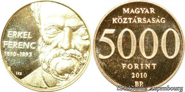 S9521 Hongrie 5000 Florint Erkel Ferenc 2010 Or Gold PF BE -> Faire Offre