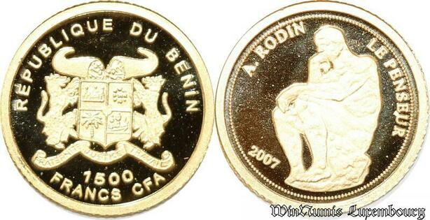 S9536 Bénin 1500 Francs CFA Rodin Le Penseur 2007 Or Gold PF BE -> Faire Offre