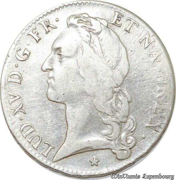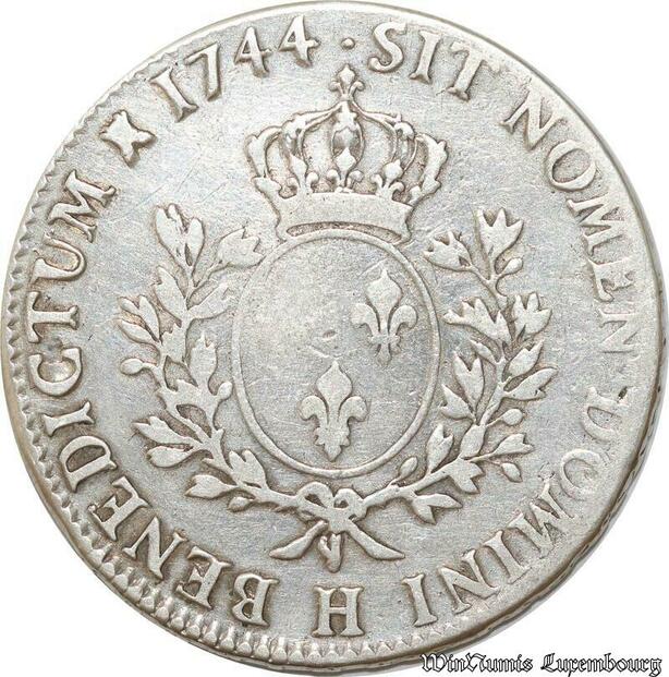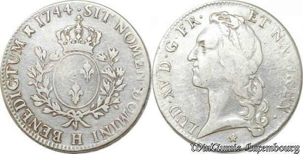 S9600 R3 Rare France Ecu Louis XV bandeau 1744 H La Rochelle Argent Silver