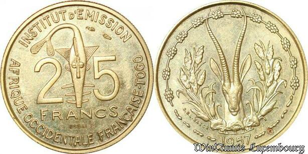 S9678 Afrique Occidentale Francaise Togo 25 Francs Essai 1957 FDC