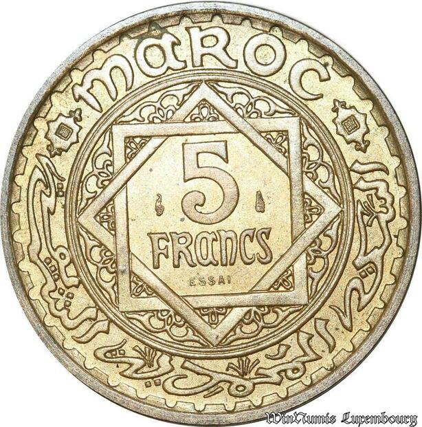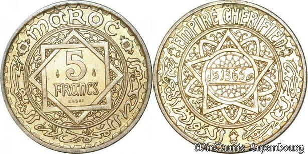 S9727 Maroc 5 Francs Essai Mohammed V Paris 1365 1945 UNC ! -> Faire Offre