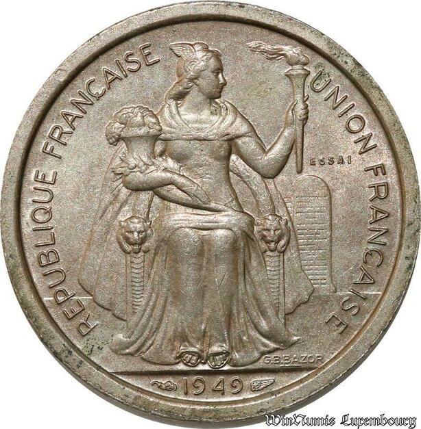 S9781 Océanie 2 Francs Essai Minerve République Bazor 1949 FDC -> Faire Offre