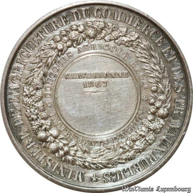 S9801 France Médaille Napoléon I Ministère Agriculture Bae 1867 Carcarsonne Silver