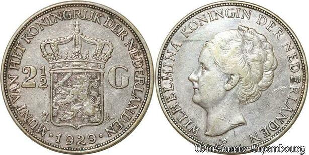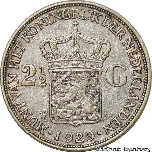 S9819 Pays-Bas 2 1/2 Gulden Wilhelmina 1929 Argent Silver