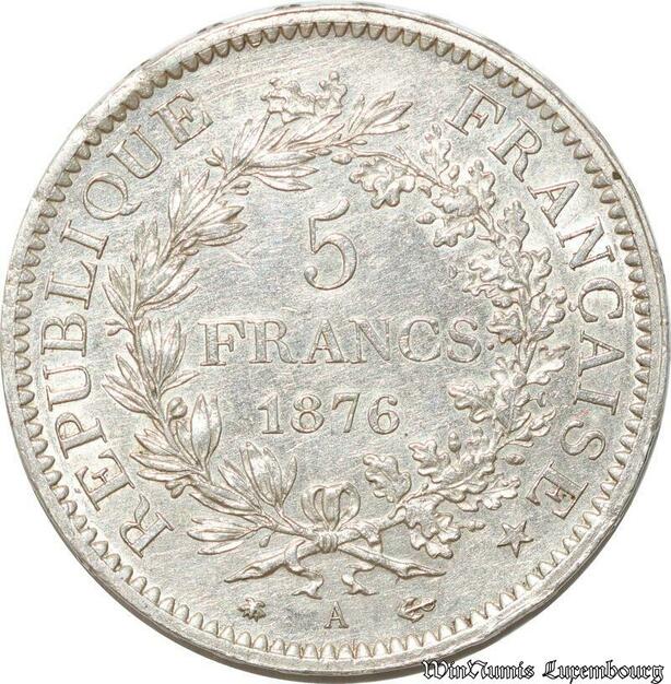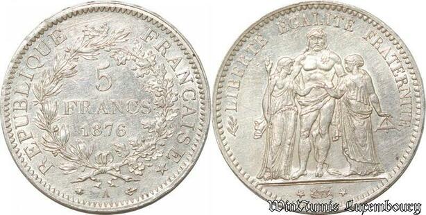 S9845 France 5 Francs Hercule Dupré 1876 A Paris Argent Silver SUP -> Faire Offre