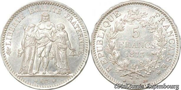 S9860 France 5 Francs Hercule Dupré 1873 A Paris Argent Silver SUP -> Faire Offre
