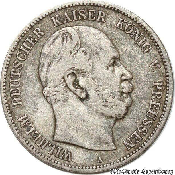 S9871 Allemagne 5 Mark Guillaume I Preussen 1876 A Argent