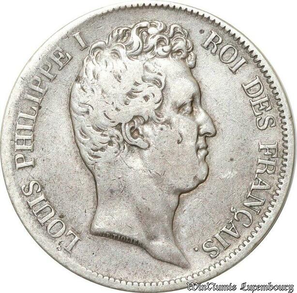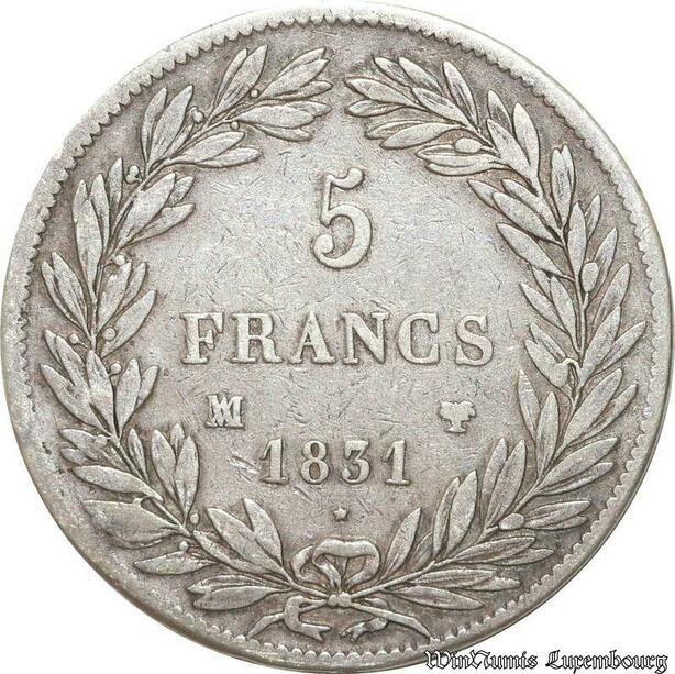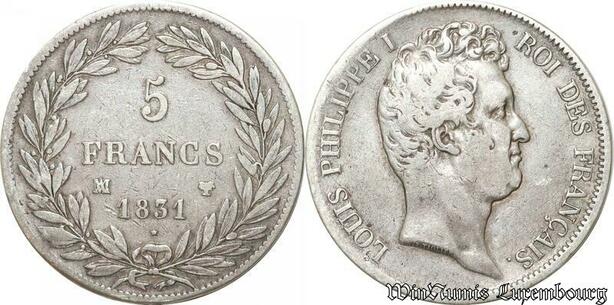 S9891 Rare France 5 Francs Louis-Philippe I Tioler creux 1831 MA Argent Silver