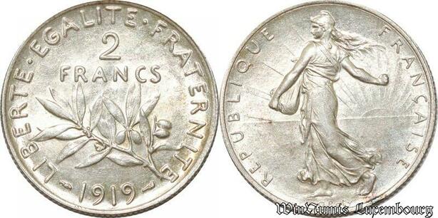 S9942 France 2 Francs Semeuse 1919 Argent Silver SUP + -> Faire Offre