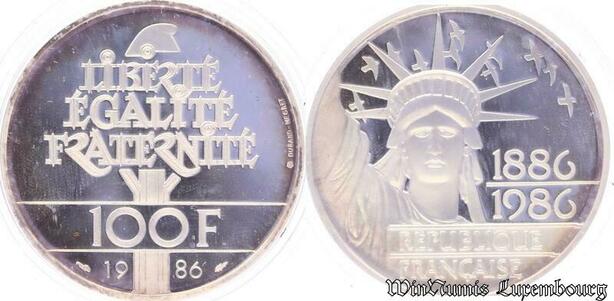 S9975 Rare France Coffret 100 Francs Eiffel Bartholdi Liberty 1986 Argent Silver BE