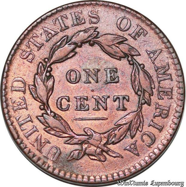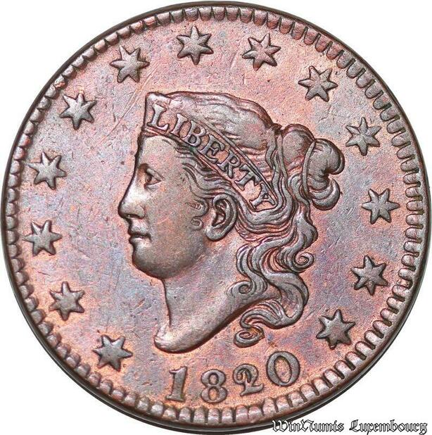 S6026 Scarce USA 1 Cent 1820/19 Coronet Head AU !53 55