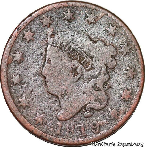 S6028 Rare Scarce USA 1 Cent 1819/8 Coronet Head