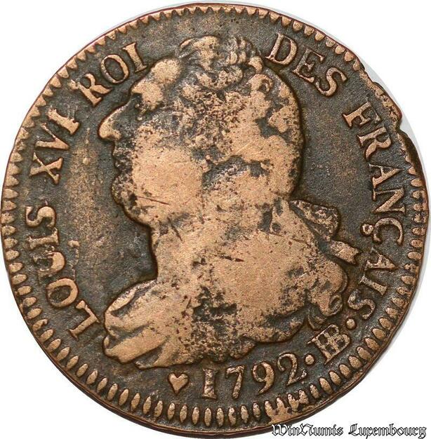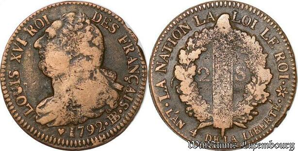 S6045 France Constitution 2 Sols Louis XVI An 4 1792 BB Strasbourg - Faire Offre
