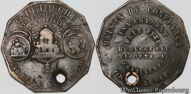 S6049 France Jeton detouche Fournisseur Empereur Napoléon III Horlogerie Bijouterie Paris